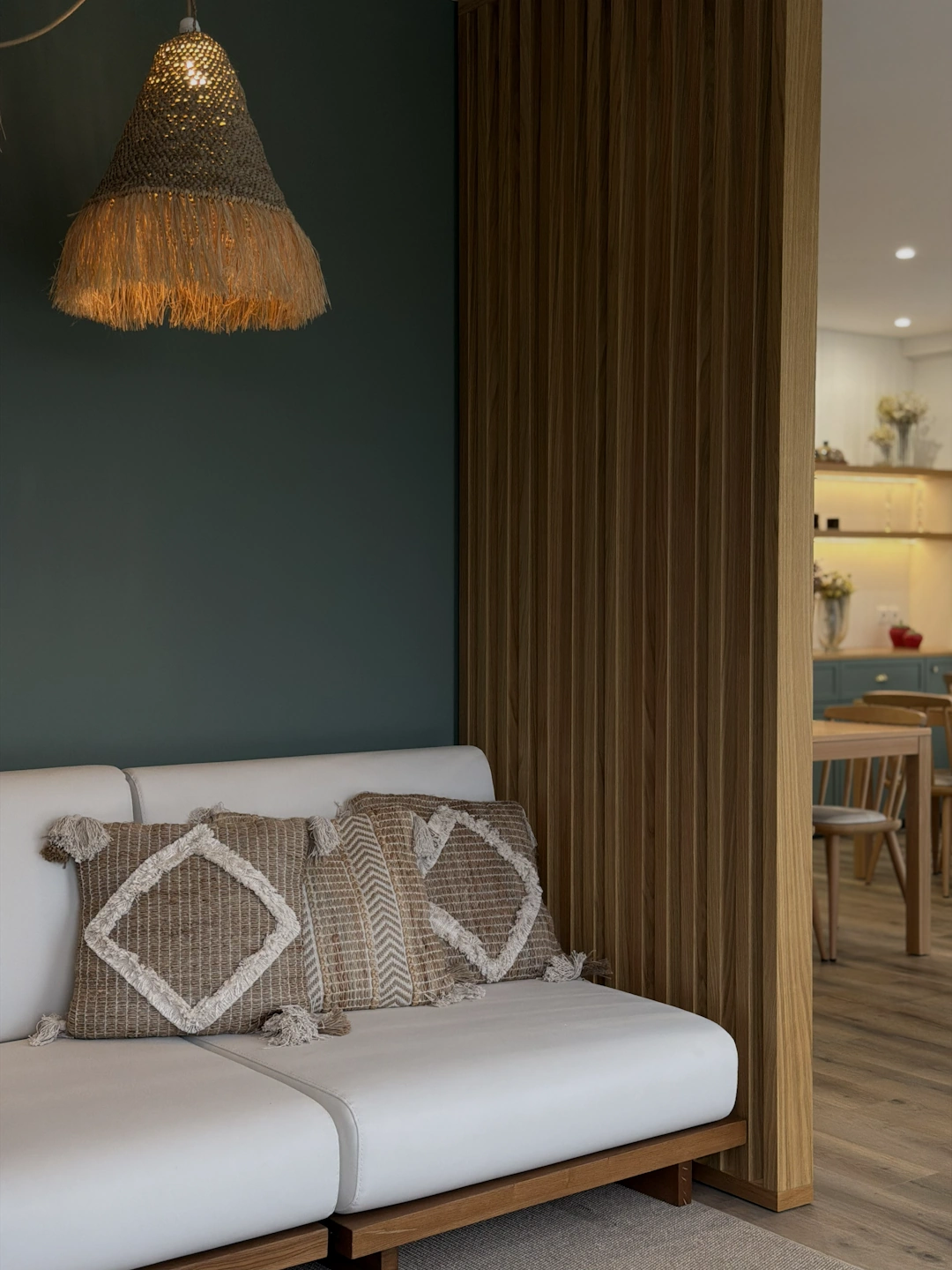 O espaço é composto por uma sala de estar com sofá‑cama para duas pessoas e...